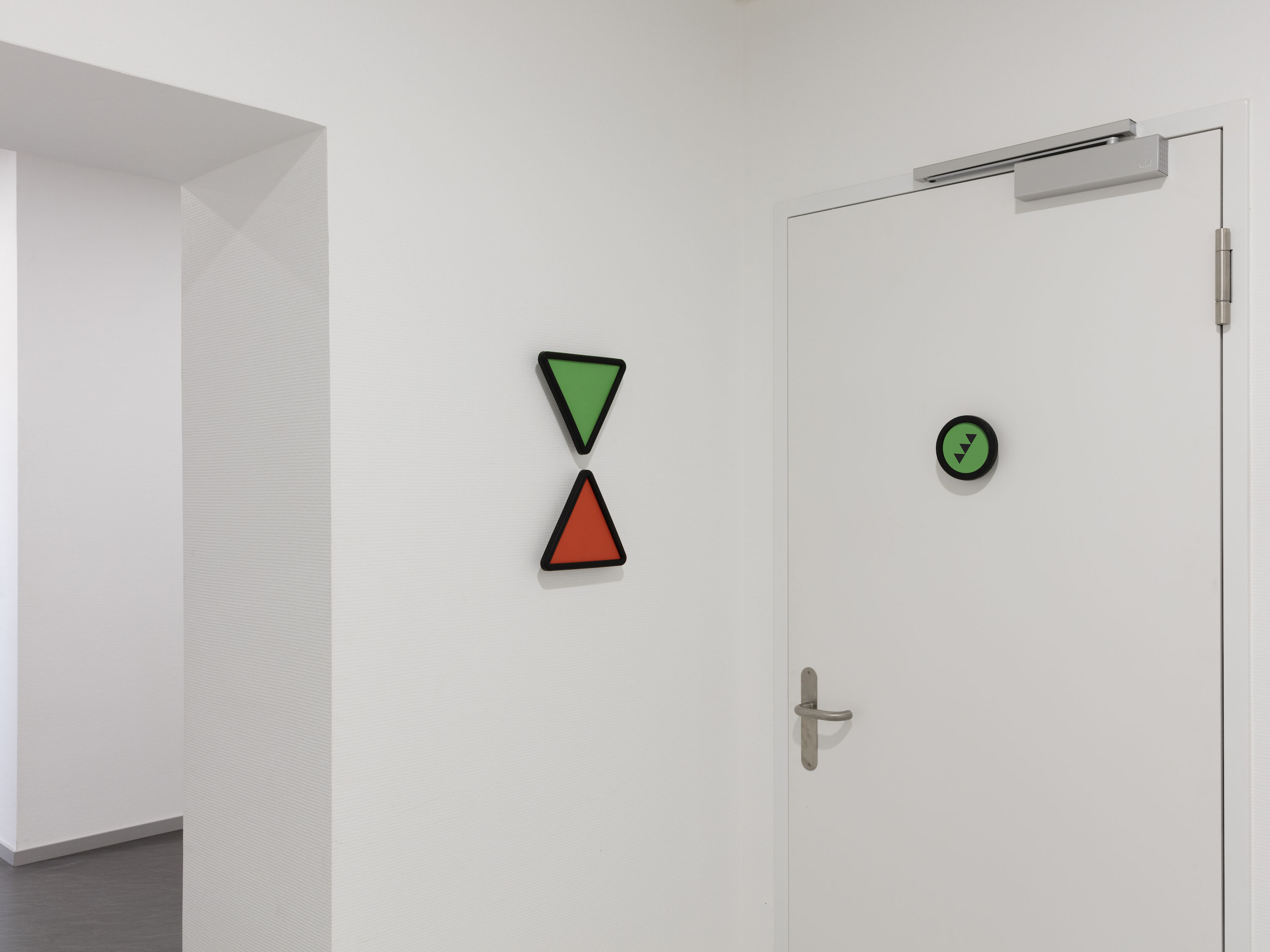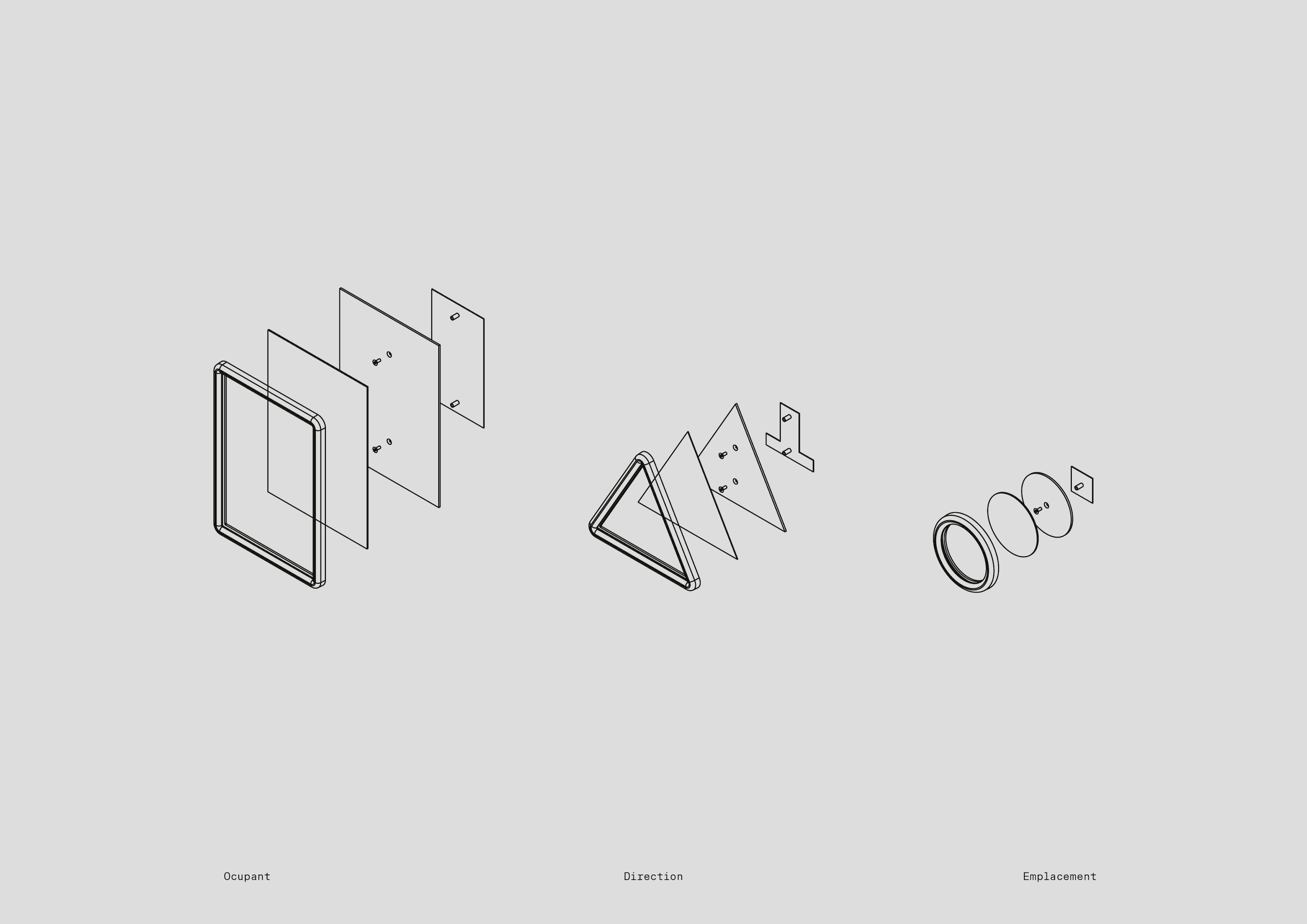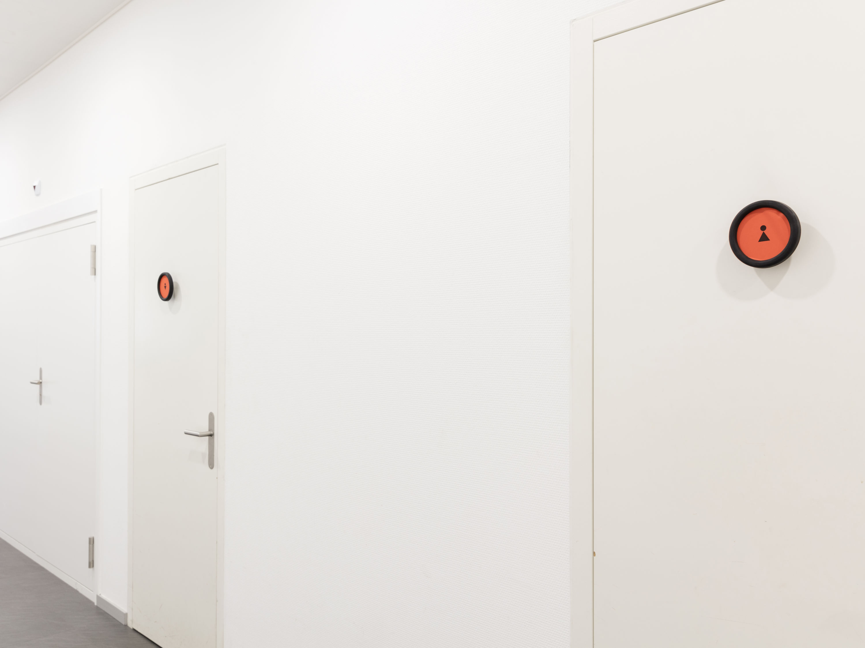Due to the ever-changing variety of its occupants, I proposed to create a dual signage system, both digital and physical. The manager creates accounts for the tenants, each of them then inserts his/her information him/herself ( logo, contact, schedule ). While the signage frames ( designed in soft rubber by Adrien Rovero specially for the occasion ) are fixed to the walls, all of the information — space number, floor, directions — are generated by the site and printed on paper, making the signage update costless. The digital map is displayed on touchsreens at the entrances and on everybody’s smartphone.