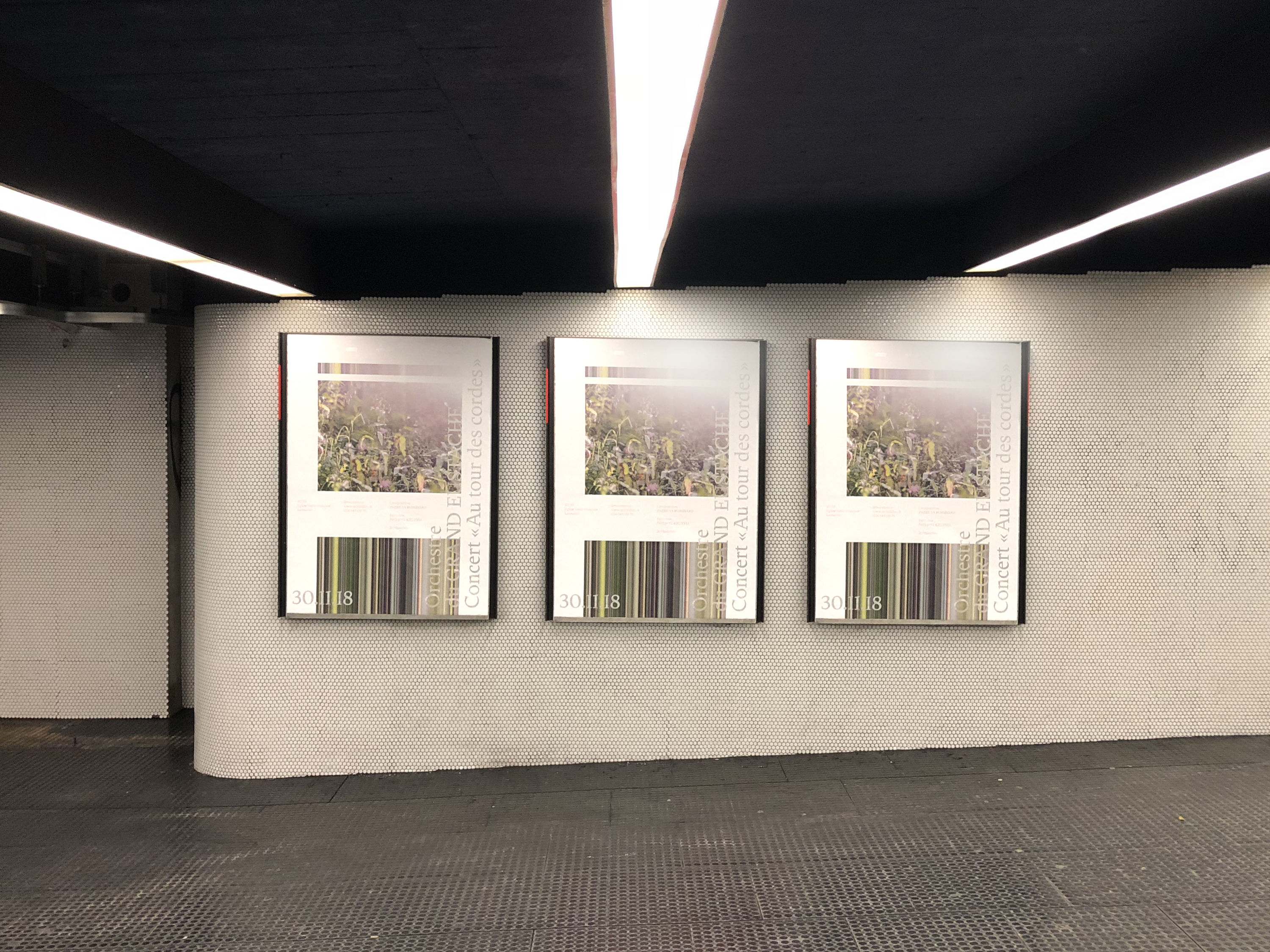Creation of a poster for a classical music concert. As part of this collaboration with photographer Matthew Gafsou, the challenge was to create a graphic hierarchy that would not disturb the perception of the image. Given the horizontal format of the picture, it seemed more appropriate to add graphic material by stretching pixels from the image rather than cropping it.