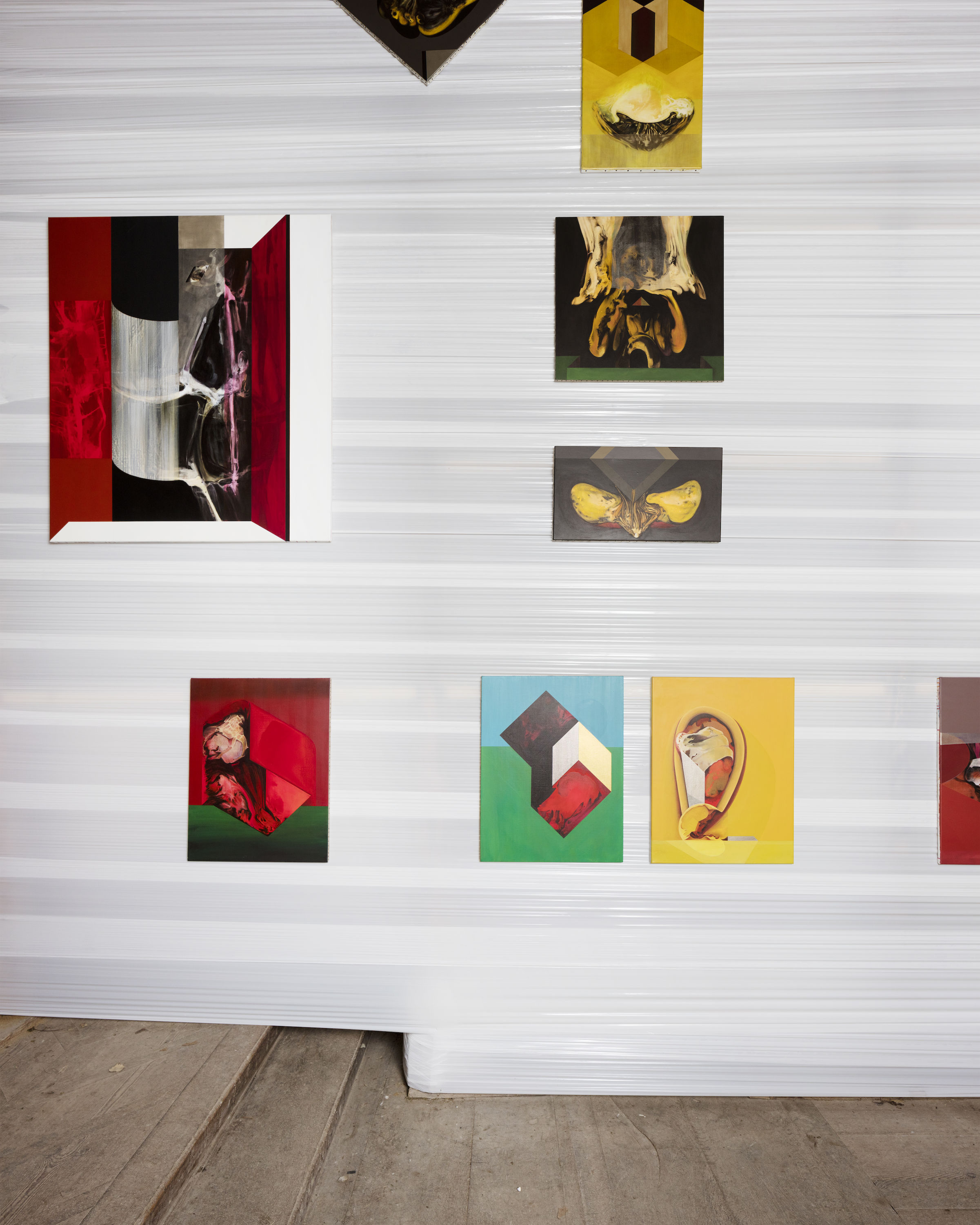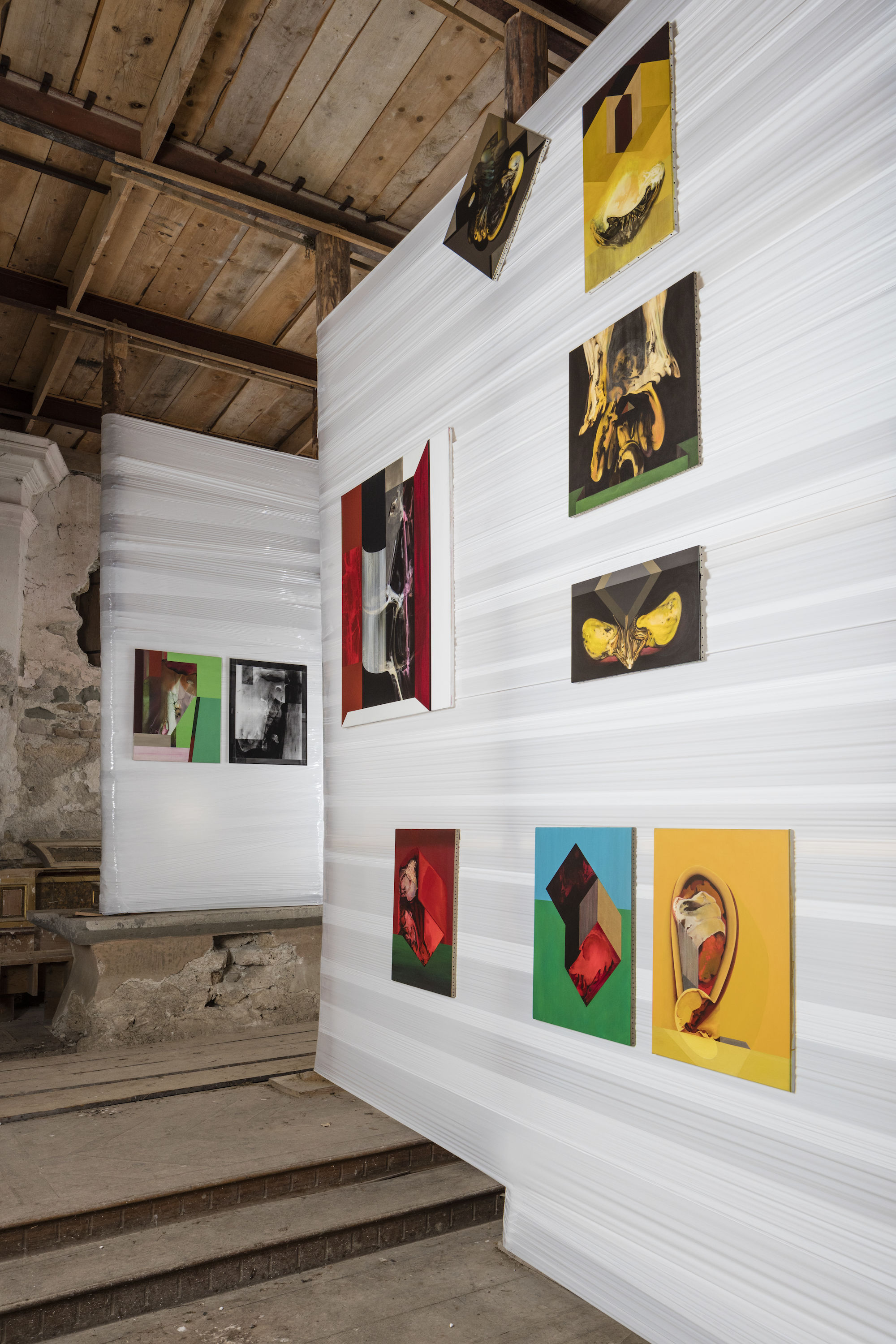This particular exhibition was curated on the occasion of the Altitudes Biennale. The brief was to organize the stage design of the artist’s practice. Due to the ever-recovering process of the paintings, an experiment was conducted in order to document the method: producing X-Ray scans of the paintings that reveal each layer of the works.