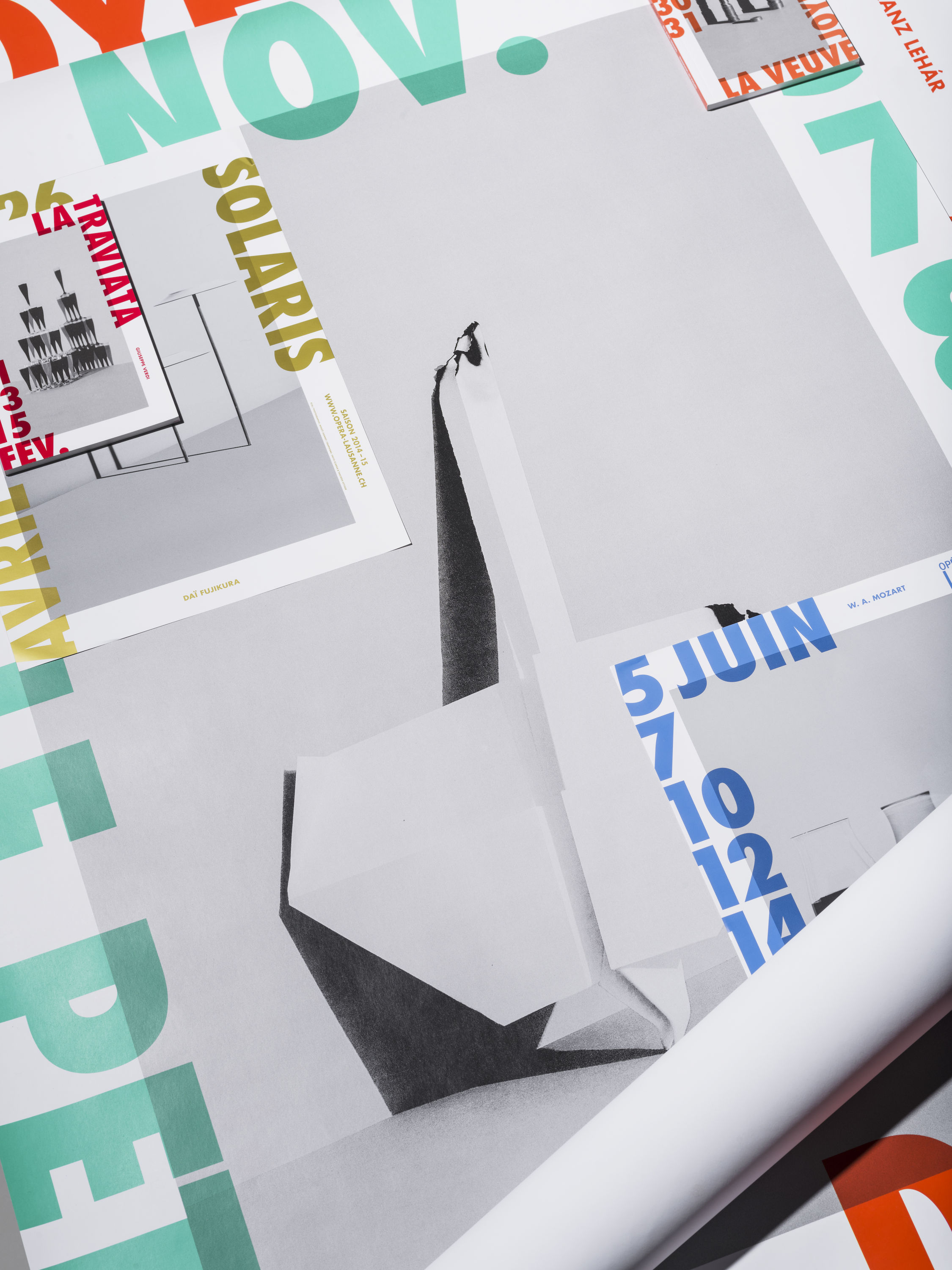 Development of a season posters series of the Lausanne Opera. The main stage is given to photographs that implement the aesthetics of still lifes using everyday objects to evoke the stakes of the given opera.