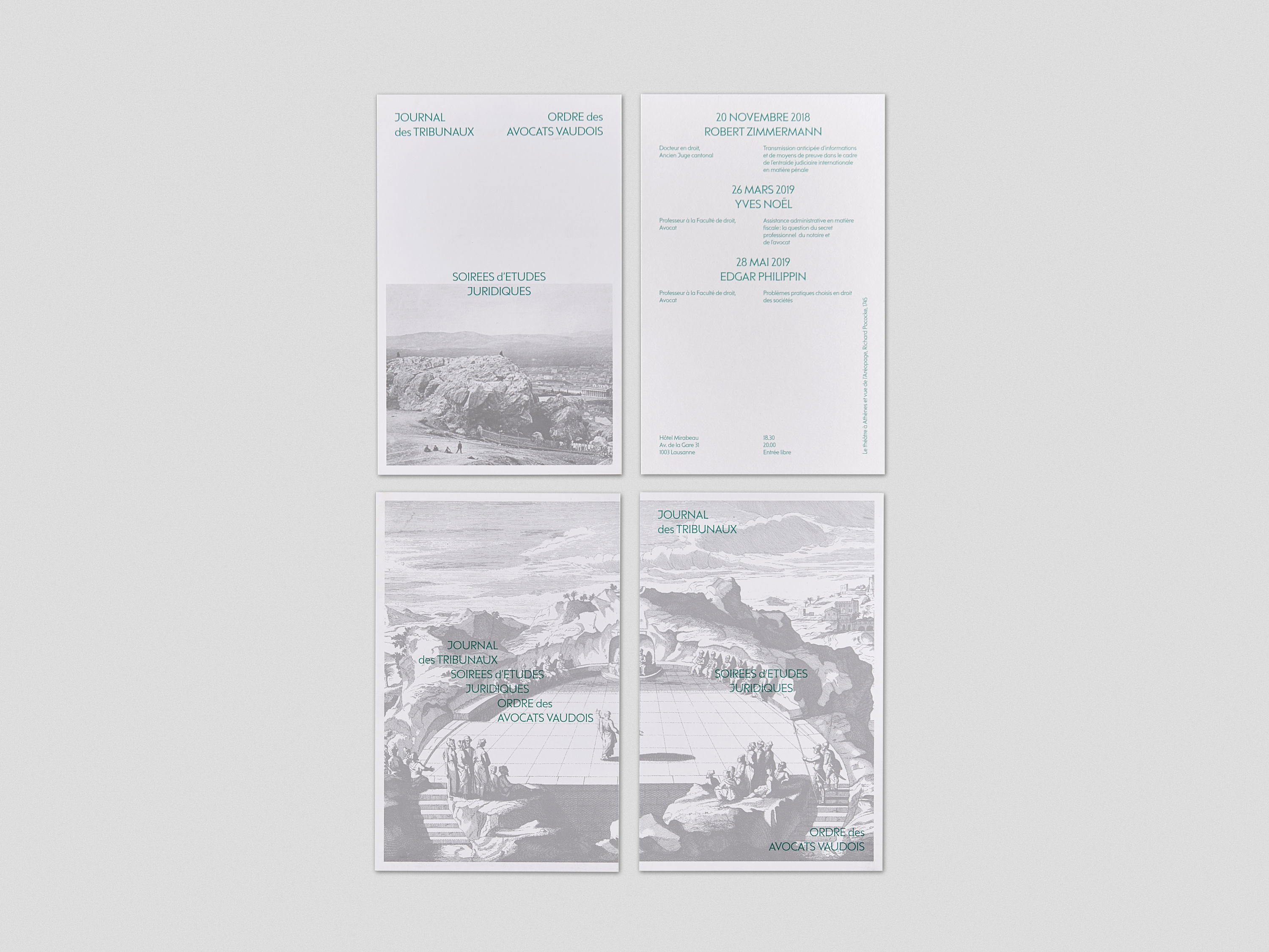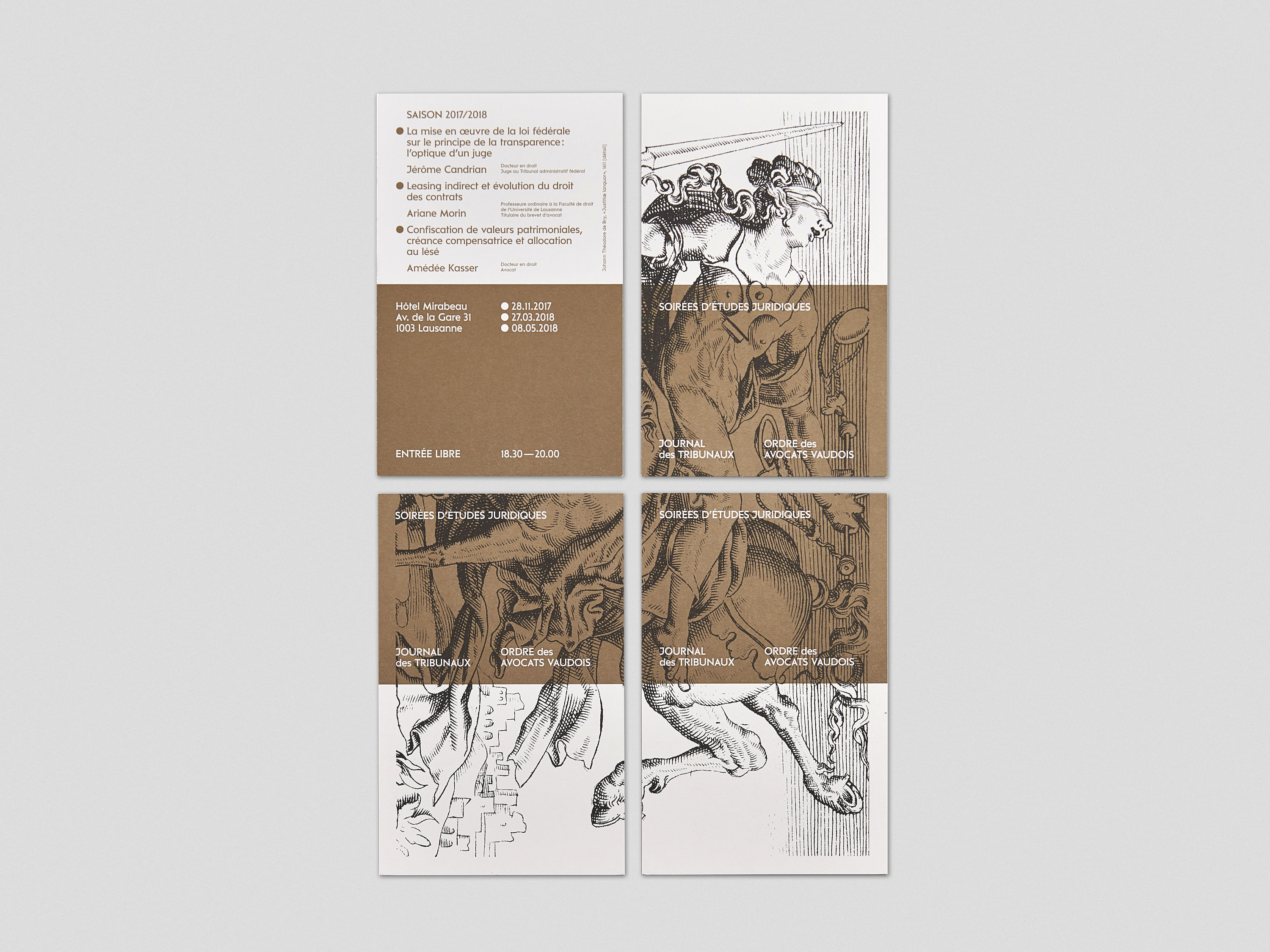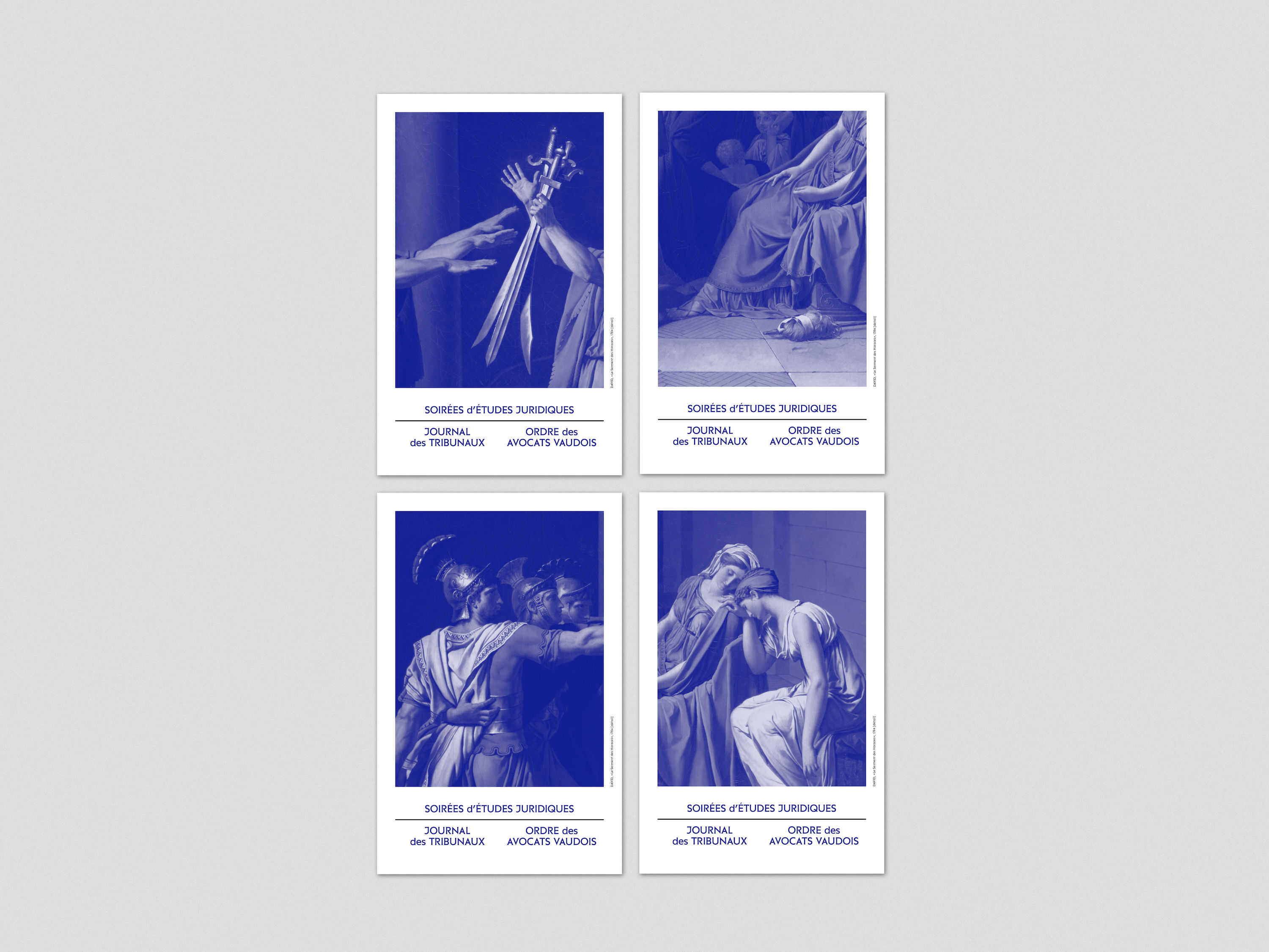 Development of flyers series for the “Legal Studies Evenings” which, gathered together, form the season poster of the conferences. The main challenge lies in finding in the history of art another representation of justice for each new year.